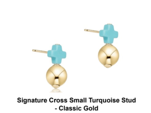 Enewton Signature Cross Small Turquoise Stud- Classic Gold