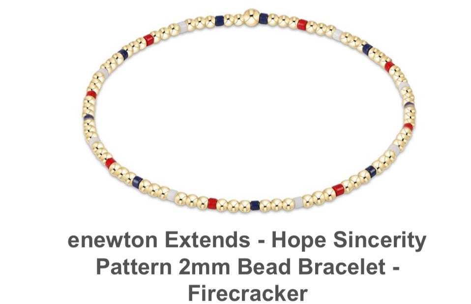 Hope sincerity pattern 2mm bead bracelet- firecracker red, white & Blue beads.