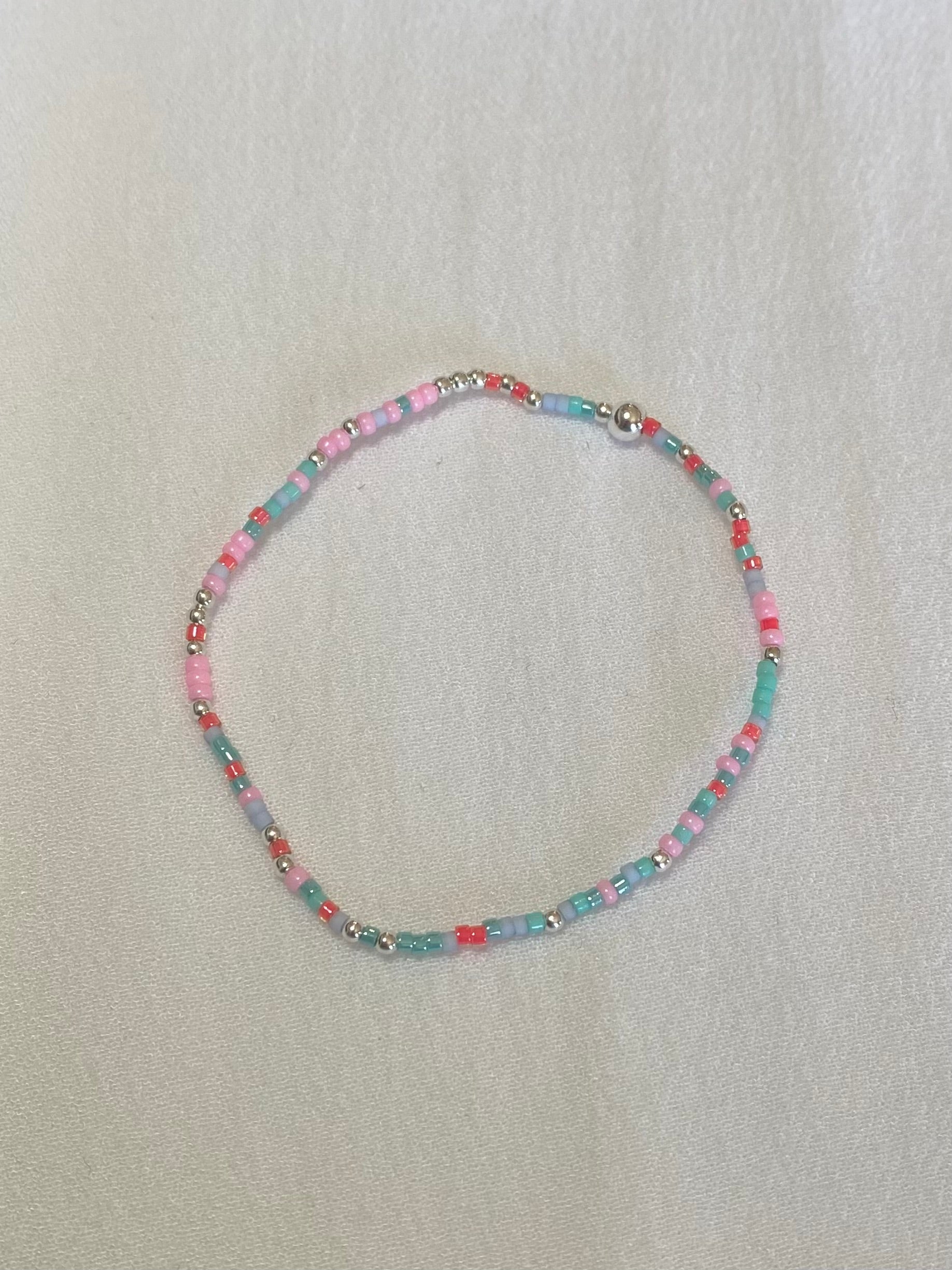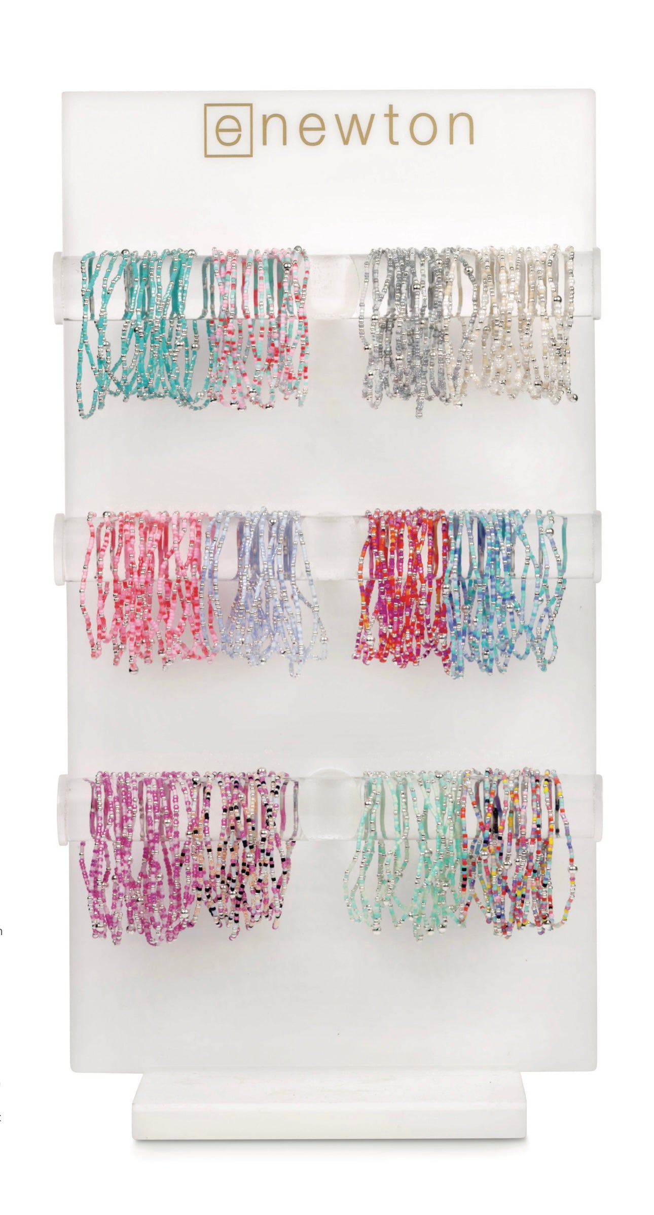 - Hand beaded on high performance elastic for a slight stretch to easily roll on and off your wrist
