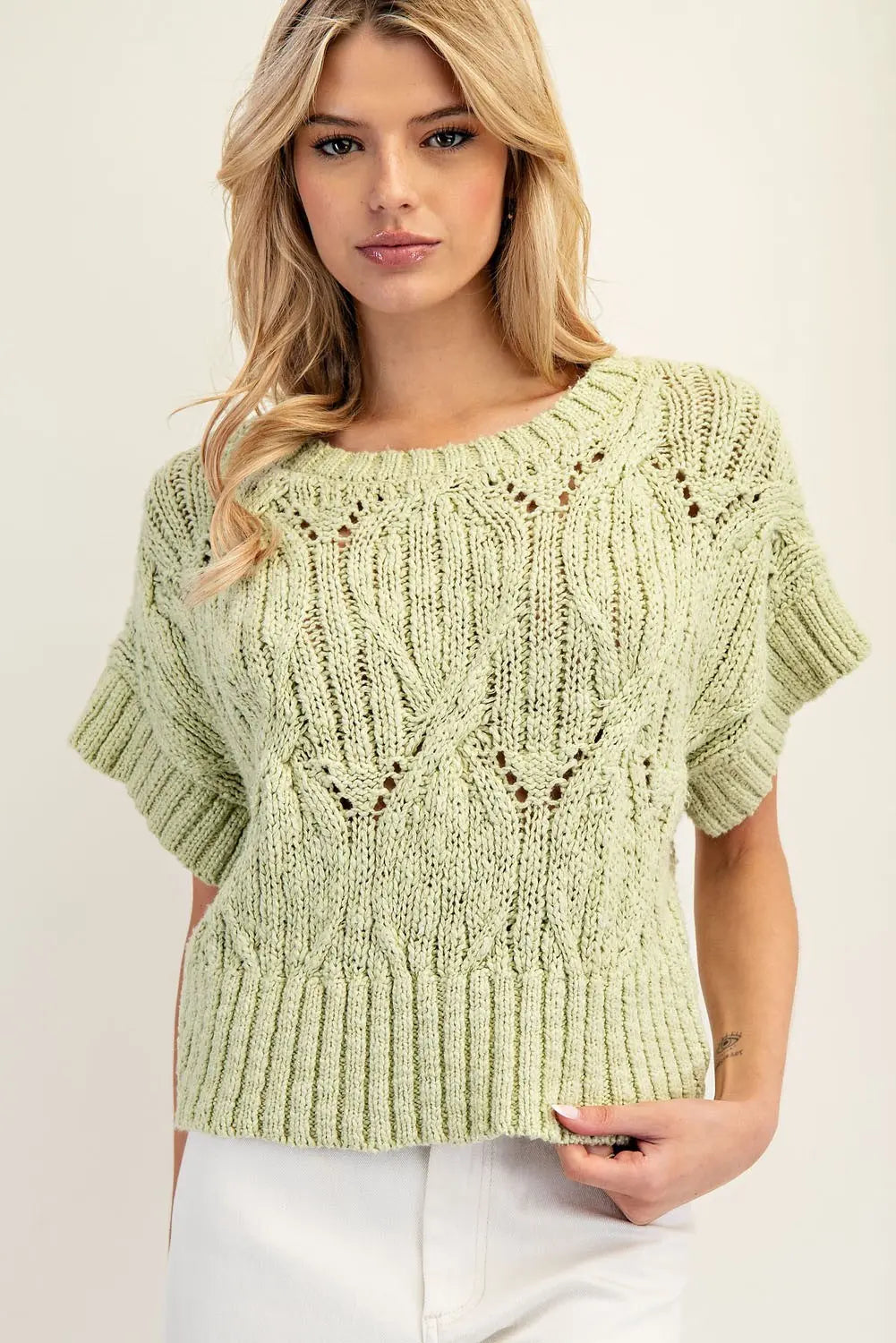 Cable Knit Short Sleeve Sweater Top