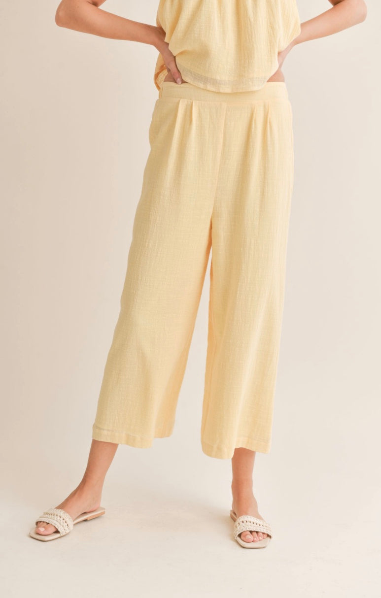 Bird Song Wide Leg Cropped Pant- Lemon