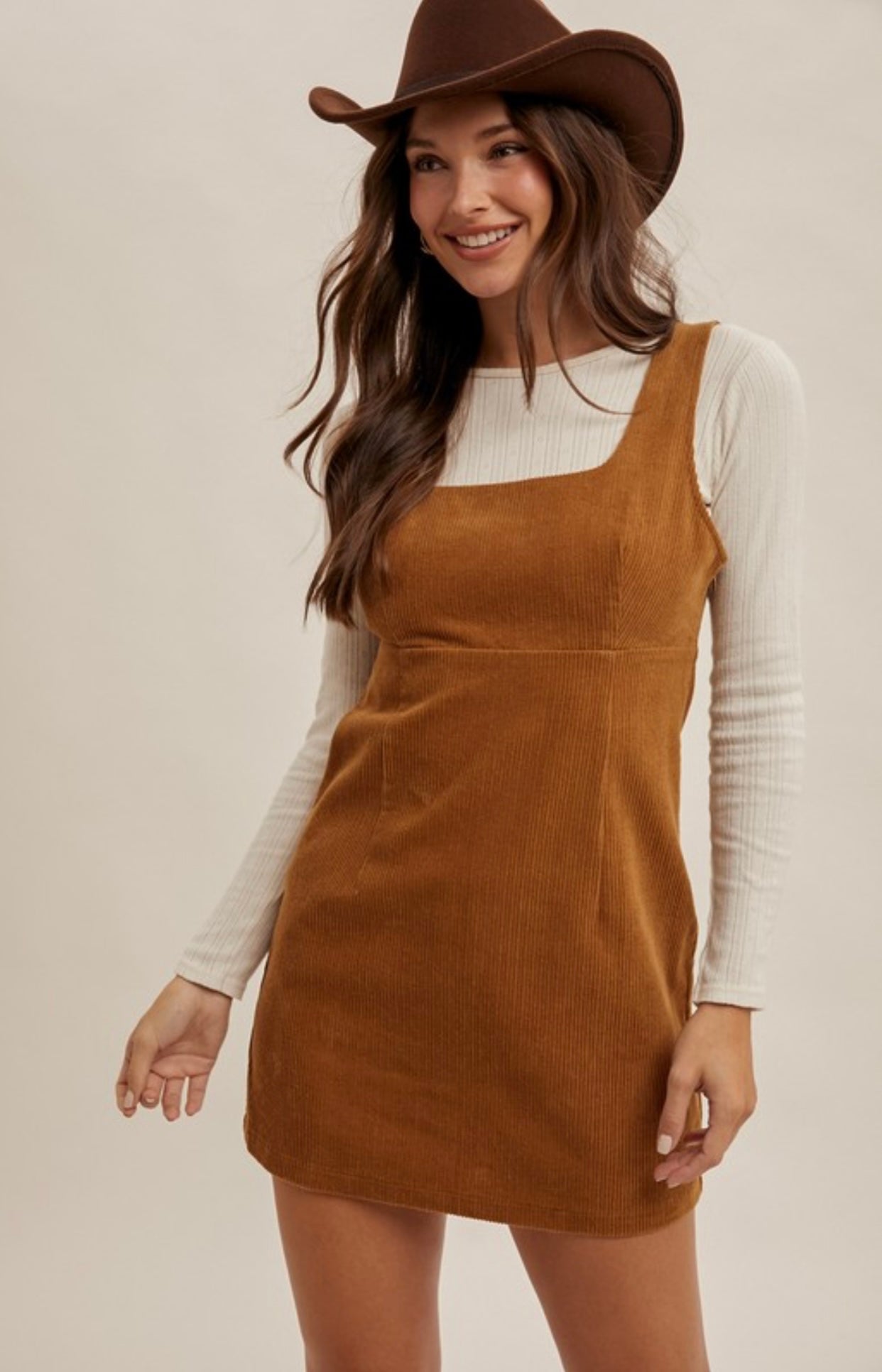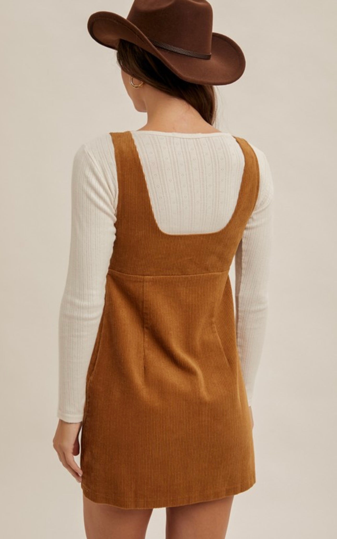 Corduroy Pinafore Dress- Caramel