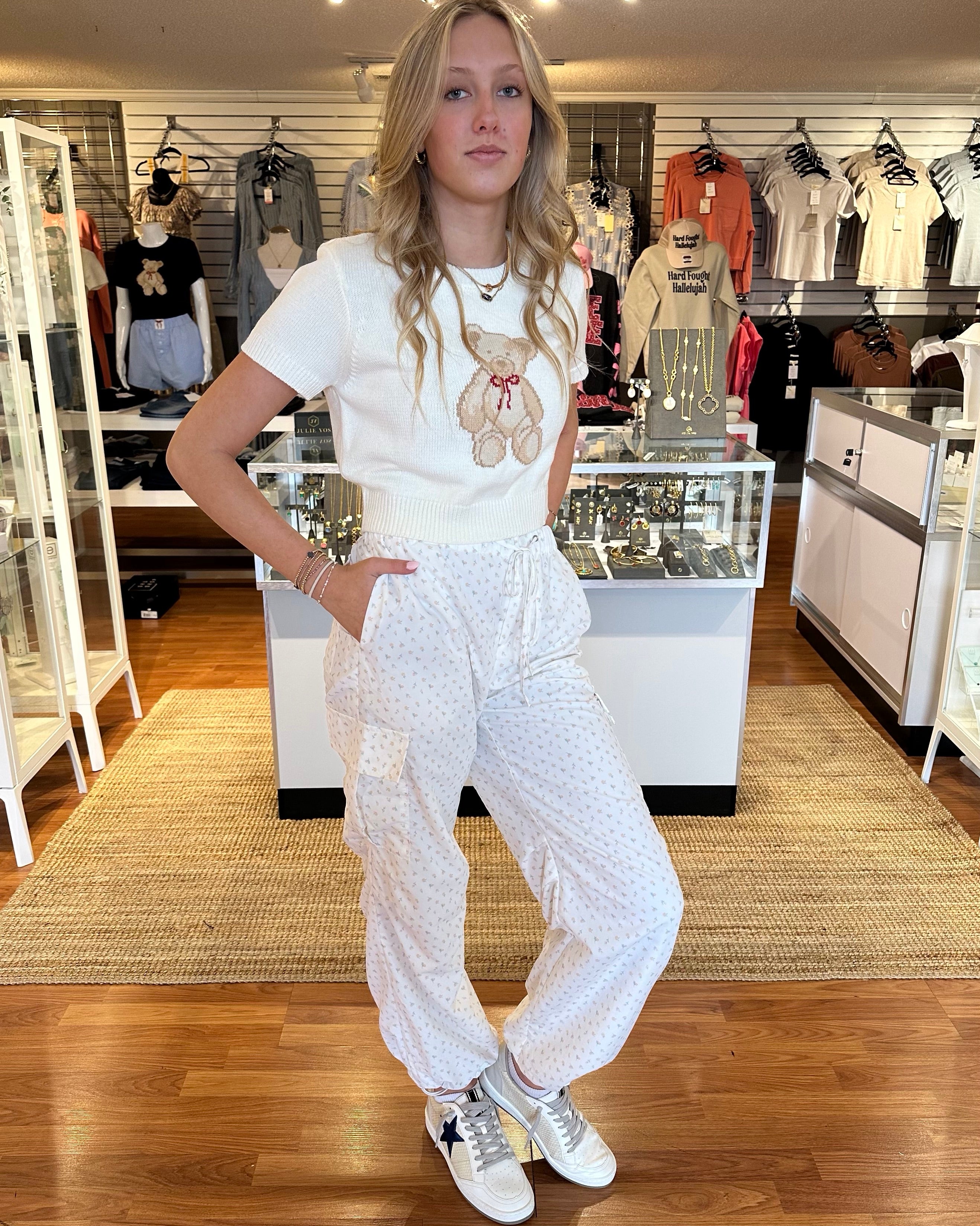 Teddy bear cropped sweater. 60% cotton, 40% acrylic.