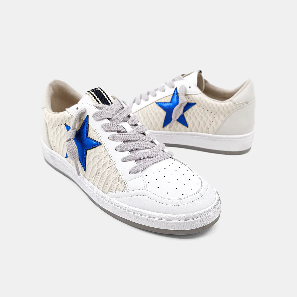 PAZ is one of our favorite must-have retro sneaker, with a low top upper body crafted in faux leather and snakeskin with metallic accents. These look amazing paired with shorts, cropped jeans and dresses.